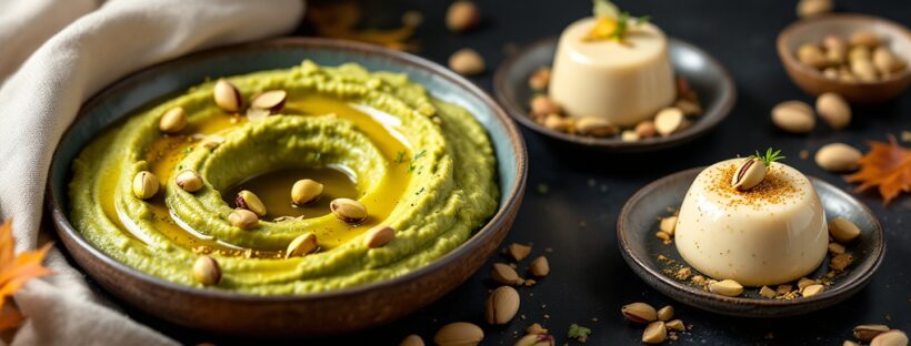 Quand l’automne s’installe et que les journées prennent une couleur dorée, les déjeuners et goûters en famille se font plus doux, plus enveloppants. Pour accompagner cette belle saison, quoi de mieux qu’un menu 100 % pistache à partager avec les enfants ? Entre la texture onctueuse d’un houmous revisité, la rondeur d’un risotto délicatement parfumé et l’exquise générosité d’une crème dessert au goût de pistache, ces recettes mettent à l’honneur un ingrédient festif et irrésistible. Faciles à préparer, elles s’adaptent aussi aux plus petits et transforment chaque repas en fête gourmande : le genre de trio dont on se souvient longtemps, surtout lorsque la cueillette vient d’avoir lieu, que les températures rafraîchissent et que l’on cherche des saveurs nouvelles sans jamais délaisser la simplicité.