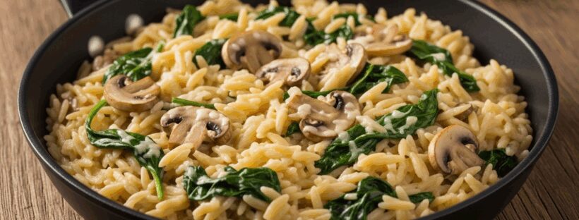 Un dîner crémeux minute : l’orzo, épinards et champignons fondants dans une seule poêle