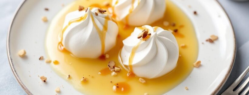 Pour une présentation qui épatera la tablée, disposer la crème anglaise au fond de verrines transparentes, puis poser les blancs pochés dessus. Parsemer de zeste d’orange, de copeaux de chocolat ou d’un filet de caramel pour une assiette qui fait « waouh » : l’effet visuel sera aussi savoureux que le dessert lui-même, surtout à l’occasion d’une fête d’automne ou d’une réunion familiale.