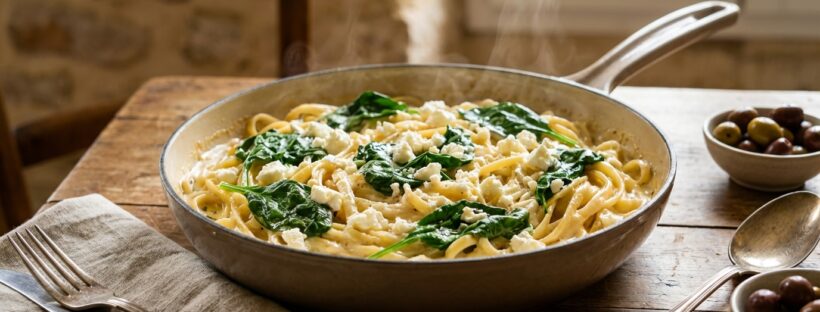 Alors que le printemps s’installe doucement mais que la fraîcheur persiste, l’envie de plats réconfortants et enveloppants reste intacte. Après une journée bien remplie, on recherche souvent des solutions culinaires qui conjuguent saveur, rapidité et qualité, sans pour autant multiplier la vaisselle. Ce plat de pâtes aux épinards et à la feta incarne cette promesse de simplicité savoureuse : il transforme quelques ingrédients du placard et un peu de produits frais en un repas familial chaleureux. Voici une recette aussi pratique que délicieuse, capable de faire apprécier les légumes verts à tous grâce à une texture crémeuse irrésistible qui séduira petits et grands.