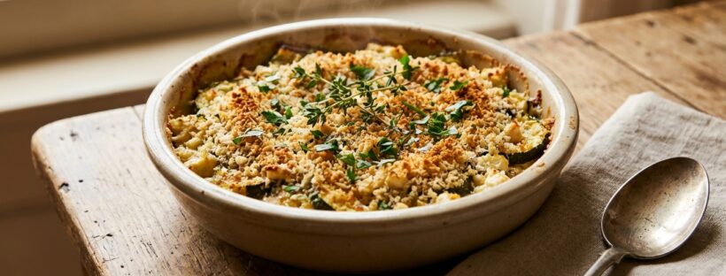 En avril, les fins de journée sentent bon le retour des assiettes colorées, celles qui rassemblent petits et grands sans chichi. Quand les courgettes arrivent sur l’étal, elles appellent un plat au four, doux et fondant, avec un dessus bien doré. Le vrai déclic vient d’un mélange émietté juste avant d’enfourner : quelques miettes qui font un “crac” irrésistible, pendant que la feta devient presque crémeuse. Le résultat rappelle un crumble salé, mais en version très simple, avec des herbes fraîches qui réveillent tout. À table, l’ambiance change : ça gratine, ça parfume la cuisine, et ça se sert au centre, comme un plat à partager. Et surtout, cette recette reste familiale, sûre et adaptable, avec une texture souple pour les plus petits et un croustillant qui fait plaisir aux plus grands.