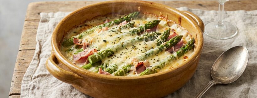 Et côté saison, le swap fait mouche : au lieu des endives, les asperges vertes d’avril apportent une douceur végétale, sans amertume. Avec du jambon et du parmesan, le plat devient printanier et franchement réconfortant, sans lourdeur.