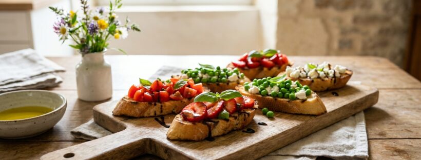 Quand les beaux jours reviennent, l’apéro se met au vert, aux couleurs du marché et aux envies de tartines qui croustillent. Sur la table, les bruschettas font toujours leur petit effet : on picore, on papote, on partage. Et puis, il y a ce détail qui change tout : un fruit posé à côté des tomates, comme une évidence… et soudain, la même tartine disparaît plus vite que les autres. Le combo, c’est la tomate bien mûre et la fraise parfumée, avec du basilic et une pointe de balsamique : sucré-salé juste comme il faut, acidulé et ultra frais. Bonus : ces recettes restent simples, se déclinent selon l’âge des enfants, et donnent vraiment envie de refaire une tournée.