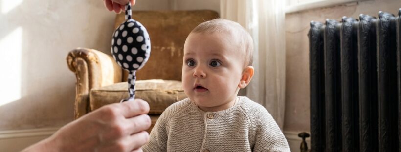 Peu à peu, ce brouillard se dissipe. Vers deux mois, il commence à fixer davantage et à suivre des objets à fort contraste. Les mobiles en noir et blanc ou les motifs graphiques sont alors très stimulants. Graduellement, les couleurs intègrent son univers visuel : le rouge est généralement la première couleur qu’il distingue nettement. Aux alentours de quatre mois, la vision en relief fait son apparition, lui permettant de mieux jauger les distances. C’est le début de la coordination œil-main : il voit, il désire, il tente d’attraper — souvent de façon maladroite, ce qui participe à son apprentissage. Vous pouvez également découvrir l’importance de l’éveil sensoriel dans le développement global de votre bébé.