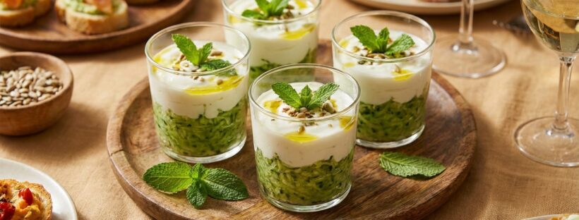 Un concombre râpé, bien essoré, une crème au yaourt grec citronnée, une menthe ciselée et un topping croquant : voilà la verrine qui coche tout ce qu’on aime à l’apéro au printemps, avec ce contraste frais et craquant qui rend la cuillère suivante inévitable. Quelle variante donnerait le plus envie : plutôt herbes et épices, ou plutôt feta et huile d’olive ?