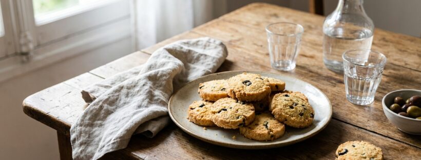 En bouche, l’objectif est clair : bords bien dorés, cœur sablé, et cette petite profondeur salée qui donne envie d’y revenir. Le parmesan apporte une note umami très ronde, et l’ajout d’olives donne des touches plus franches, presque méditerranéennes. Pour les enfants, la texture reste facile à croquer si le cookie n’est pas trop grand.