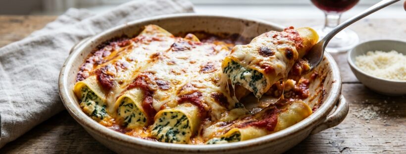 Au printemps, quand les journées filent entre école, boulot et envies de bon, un plat au four fait toujours l’unanimité à table. Et là, surprise : de simples tubes de pâte secs se transforment en gratin “waouh” dès qu’ils cachent une farce douce, verte et ultra onctueuse. Le genre de bouchée qui se coupe à la cuillère, qui sent bon la muscade, et qui fait fondre les parents autant que les enfants. Le secret tient en trois couches : une ricotta bien crémeuse, des épinards juste tombés, puis un duo de sauces qui enveloppe tout sans jamais écraser le goût. Résultat : un dessus doré, un cœur fondant, et ce moment où l’assiette revient… encore pleine.