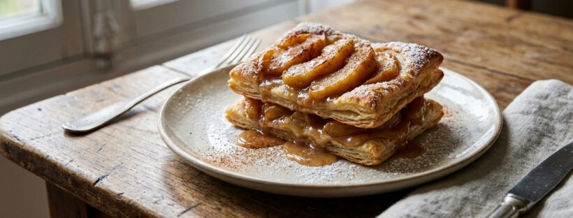 Le geste clé, c’est de tailler les pommes en lamelles très fines pour obtenir ce côté ultra-fondant. Plus elles sont fines, plus elles “boivent” la pâte et se soudent entre elles, jusqu’à former une tranche qui se tient sans devenir sèche.