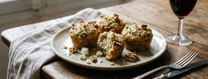 Version plus corsée : choisir un chèvre affiné, torréfier rapidement les noix à sec à la poêle, puis poivrer davantage. Le muffin gagne en notes toastées et en caractère bien franc, parfait sur une planche apéro.