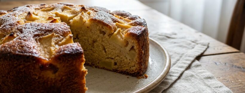 Ce gâteau se garde très bien : le lendemain, il devient encore plus moelleux et les pommes parfument davantage la mie. Un passage très court au four doux ou quelques secondes au micro-ondes redonnent un côté tiède et fondant parfait.